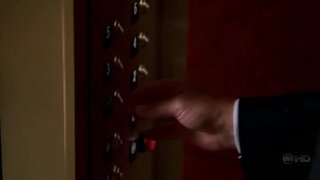 Saffron Burrows on a guy in a elevator from Boston Legal